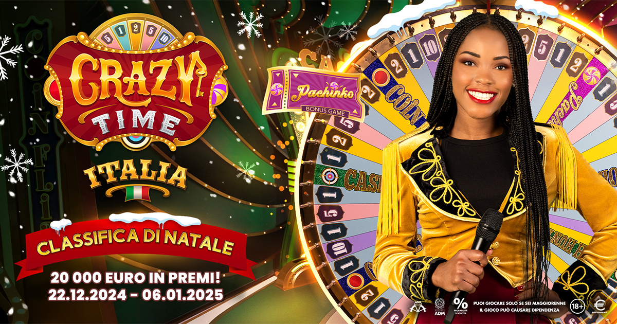 Crazy Time Italia, la nuova promozione firmata Evolution approda nel Casinò di Giochi24. L’iniziativa metterà in palio un montepremi totale di 20.000€. Un’appassionante competizione che ti porterà a conquistare uno dei 100 premi in palio. L’iniziativa si svolgerà in due periodi promozionali con due classifiche diverse. Gioca Alla Crazy Time Italia presente nella lobby di Evolution e accumula punti.